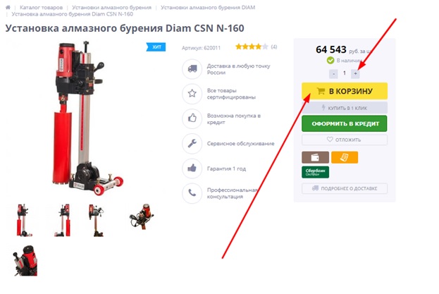 1. После выбора товара в каталоге необходимо выбрать количество товара и нажать «положить в корзину»