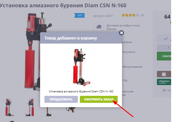 2. Теперь товар в корзине и можно продолжить выбор других товаров или перейти к оформлению заказа на этот товар