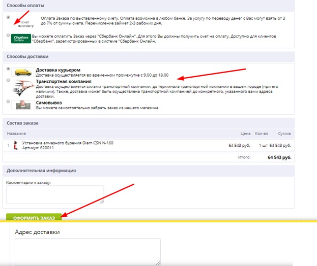 3. На странице оформления заказа нужно внести контактные данные, способ оплаты и доставки и нажать «оформить