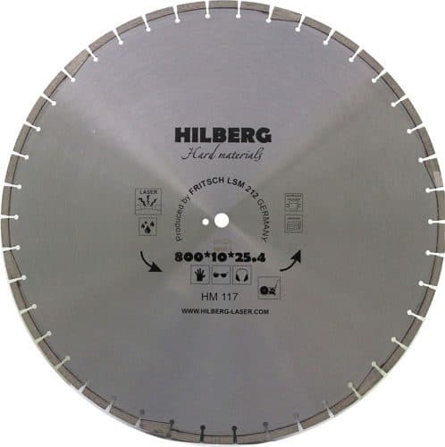 Алмазный диск Hilberg Materials Laser Ø800 мм с высокой скоростью реза применяется для резки армированного бетона, железобетона, огнеупоров и гранита. Толщина алмазного слоя 4,9 мм, а высота 10 мм. Посадочное отверстие - 25,4 мм. Диск произведен на немецком оборудовании Dr. Fritsch методом лазерной наварки сегментов, количество которых варьируется в зависимости от диаметра круга. Диск используется на нарезчиках швов.