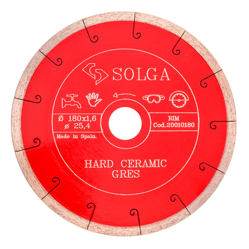 Алмазный диск Solga Diamant HARD CERAMICS Ø180 мм предназначен специально для резки керамики и керамогранита. Толщина алмазного слоя 10 мм, а толщина 1,8 мм. Посадочное отверстие - 25,4 мм. Сплошная режущая кромка обеспечивает точный и гладкий рез без сколов. Резка осуществляется с применением водяного охлаждения. Диск используется на плиткорезных станках