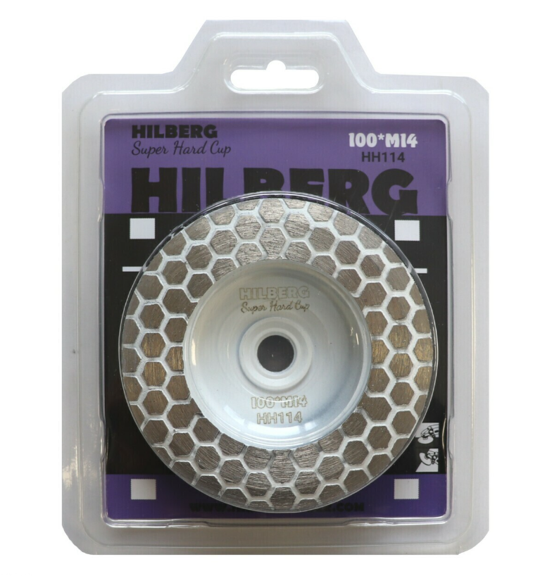 Алмазная чашка Hilberg Super Hard Cup Ø100 мм применяется для обработки края керамогранитной и керамической плитки с помощью УШМ. Диаметр посадки М14.