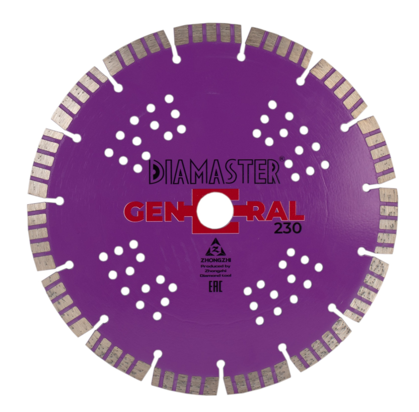 Алмазный диск Diamaster GENERAL Ø230 используется для сухой и мокрой резки различных материалов. Диаметр диска 230 мм, посадочное отверстие 22,23 мм. Количество сегментов - 16 шт. Толщина алмазного слоя 2,8 мм, высота алмазного слоя 12 мм.