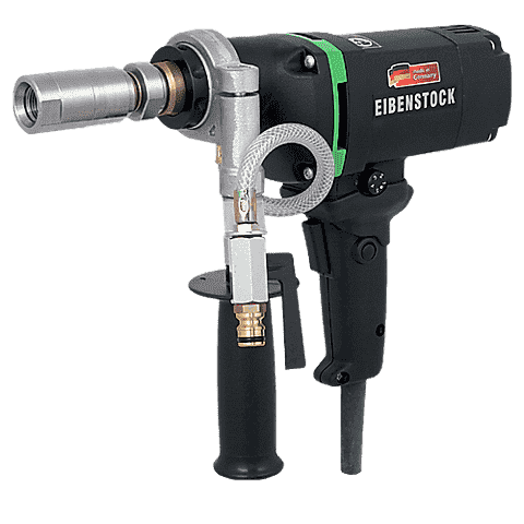 Алмазная дрель Eibenstock END 1550 P оснащена двигателем мощностью 1,5 кВт. Применяется для мокрого сверления отверстий в строительных материалах: натуральный камень, керамическая плитка, керамика, фарфор, каменная керамика, стекло, железобетон. Подача воды в место бурения необходима для охлаждения коронки и уменьшения образования пыли. Максимальный диаметр бурения составляет 68 мм. Дрель можно использовать в комплекте со станиной для стационарного применения при бурении большими диаметрами коронок.
