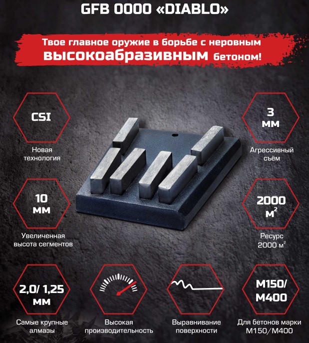 Алмазный франкфурт GT GFB0000 Diablo используется для грубого, агрессивного съёма и выравнивания полимерной поверхности, для старых полимерных покрытий. Зернистость - 2000/1250 мкм. Ресурс - 2000 м² Качество поверхности: выровненный пол, для нанесения покрытий, требующих высокой адгезии с шероховатостью 0,95 мм. Наши франкфурты являются одной из визитных карточек собственного производства. Вся продукция проходит через систему контроля качества на каждом этапе производства и полностью соответствует требованиям потребителей. Мы гарантируем качество, надежность и высокий ресурс оборудования.