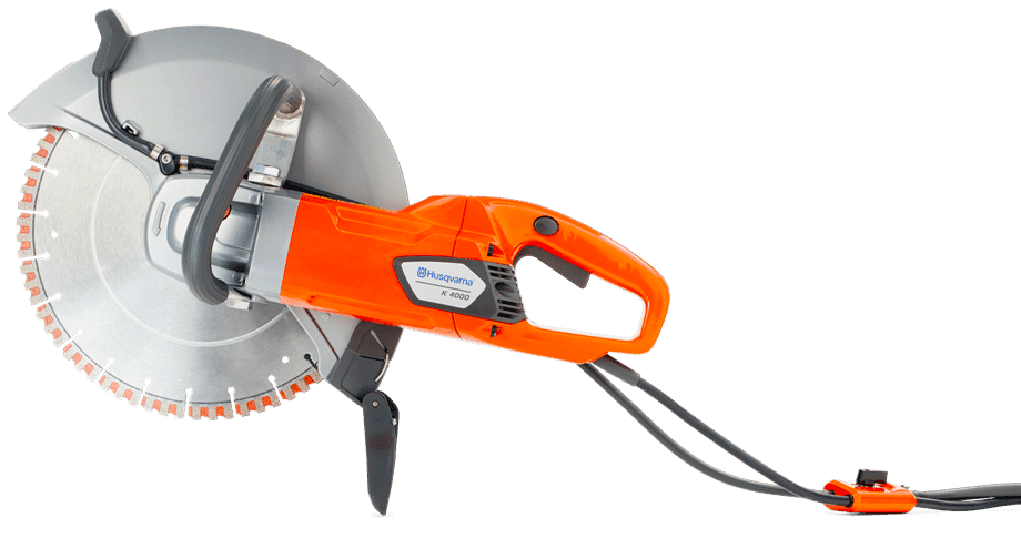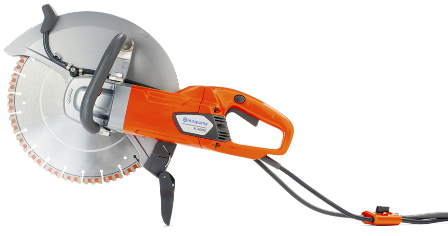 Электрический резчик Husqvarna K4000 WET первая модель, оснащенная системой подавления пыли Husqvarna DEX. Резчик оборудован мощным электрическим двигателем 220В мощностью 2,7 кВт. Максимальная глубина реза составляет 125 мм. Используемый диаметр диска 350 мм. Быстроразъемные замки на шпинделе и большой вырез кожуха делают замену диска быстрой и легкой. Система ElgardTM защищает от перегрузки, контролируя скорость вращения. Коническая передача с большой шестерней обеспечивает высокую прочность, минимум потерь мощности и низкий шум. Встроенный регулятор давления воды обеспечивает необходимый поток воды на диск, также он даёт нужное количество воды для эффективного отвода шлама. Вес оборудования 7,6 кг.
