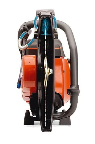 Кольцерез Husqvarna K970 Ring оснащен бензиновым двигателем мощностью 6,5 л.с. Инновационная технология RingSaw позволяет осуществлять рез глубиной до 270 мм за один проход. Поликлиновый ремень совместно с запатентованной системой DuraStarter и технологией Active Air Filtration обеспечивают увеличение интервала между обслуживанием. Используемый диаметр диска 370 мм. Система DEX позволяет снизить расход воды при влажной резке, обеспечивая эффективное подавление пыли и снижение количества шлама. Стартер с хорошо защищенным от пыли механизмом возврата пружины и подшипниками практически не требует обслуживания. Антивибрационная система снижает вибрацию на рукоятки для более комфортной и долгой резки. Вес оборудования 13,6 кг.
