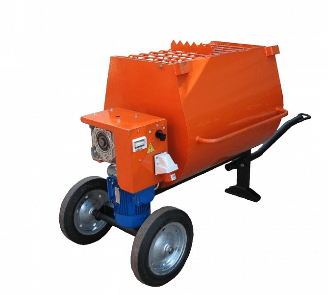 Принудительная бетономешалка МИСОМ СО 351-150 мощностью 1,5 кВт применяется для циклического приготовления строительных растворов принудительным перемешиванием. Перемешивание осуществляется за счет вращения четырех лопастей, закрепленных на горизонтальном валу (внутри смесительного барабана). На верхней части бункера установлена предохранительная решетка, предотвращающая попадание нежелательных материалов внутрь барабана. Вместимость 150 л, объем готовой смеси 80-100 л. Низкая частота вращения позволяет качественно вымешивать вязкие составы и приготавливать сухие смеси. Вес оборудования 172 кг.