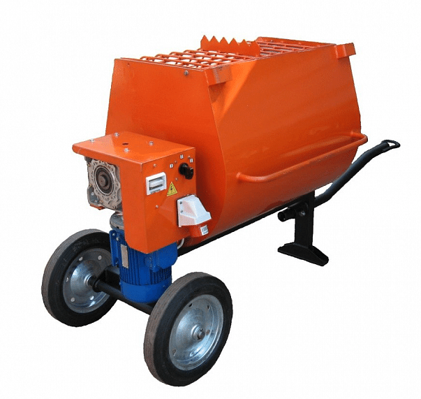 Принудительная бетономешалка МИСОМ СО 351-200 мощностью 1,5 кВт применяется для циклического приготовления строительных растворов принудительным перемешиванием. Перемешивание осуществляется за счет вращения четырех лопастей, закрепленных на горизонтальном валу (внутри смесительного барабана). На верхней части бункера установлена предохранительная решетка, предотвращающая попадание нежелательных материалов внутрь барабана. Вместимость 200 л, объем готовой смеси 100-120 л. Низкая частота вращения позволяет качественно вымешивать вязкие составы и приготавливать сухие смеси. Вес оборудования 172 кг.
