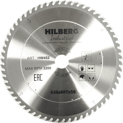 Алмазный диск Hilberg Industrial Дерево Ø450/60 мм с твердосплавной напайкой сегментов применяется для сухой резки твердой и мягкой древесины. Толщина алмазного слоя 3,6 мм. Посадочное отверстие - 50 мм. Количество зубьев - 60 шт. Диск используется на циркулярных пилах и станках по дереву.