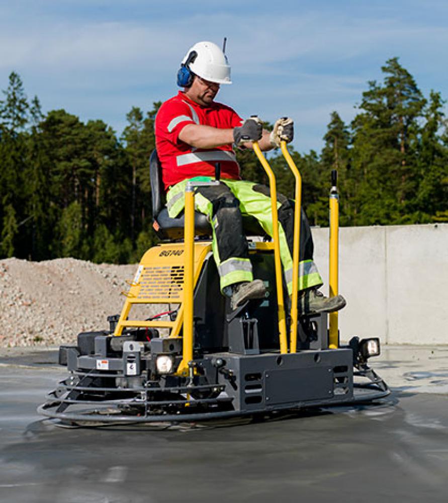 Двухроторная затирочная машина Atlas Copco BG740 - это самоходная машина с механическим управлением. Машина оборудована бензиновым двигателем Honda GX 690 мощностью 24,5 л.с. На корпусе редуктора находится смотровое окно для контролирования уровня масла. Диаметр каждого ротора 914 мм, что позволяет обрабатывать за проход полосу шириной до 1808 мм. На затирочной машине установлена система орошения с принудительным насосом. Система управления орошением находится на ручке оператора. Машина оснащена системой орошения с принудительным насосом. Система управления орошением находится на ручке оператора. Для комфортной эксплуатации рабочее место оператора имеет доступ ко всем элементам управления, оснащено регулируемым сидением и подлокотникам. Возможность регулировки угла наклона лопастей и скорости вращения позволяет выбрать оптимальный рабочий режим. Вес оборудования 333 кг.
