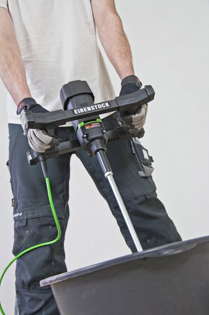 Строительный миксер Eibenstock EHR 18.1 S SET мощностью 1100 Вт применяется для смешивания строительных материалов с низкой вязкостью: клея, краски, цемента и смесей для выравнивания. Максимальный объем смеси - 40 кг. Шпиндельное соединение - М14. Электронные переключатель регулирует скорость для меньшего разбрызгивания. Крышка с лабиринтными направляющими защищает от грязи, пыли, камней и водных брызг. Вес оборудования 4,1 кг.
