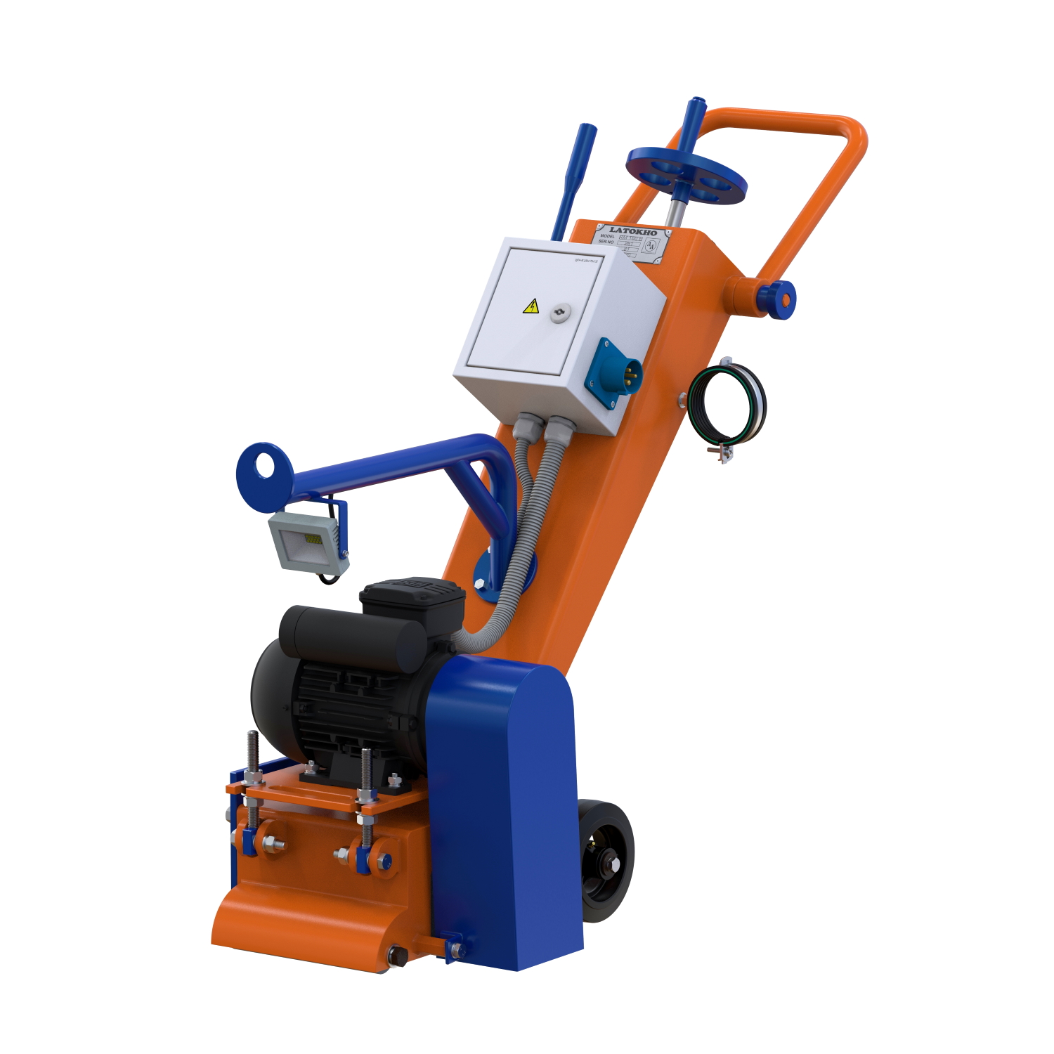 Фрезеровальная машина LATOKHO RM 180 E оснащена электрическим двигателем мощностью 2,2 кВт. Рабочая ширина обработки составляет 180 мм, а вес машины - 81 кг. Максимальная глубина фрезерования - 5 мм. Используется для фрезерования бетона до марки B25 и асфальта, удаления краски с бетона, очистки покрытий, придания шероховатости поверхности и удаления дорожной и пластиковой разметки с асфальта. Есть возможность подключить пылесос диаметром 40 мм. На машине применяются барабаны с различными режущими инструментами фирмы KRUG. Так же для снятия краски с бетона и очистки загрязненных поверхностей можно установить барабан-щетку LATOKHO DMB 180. Подъем машины осуществляется за серьгу, расположенную на защитной дуге. Задние транспортные колеса оснащаются роликовым подшипником и пресс-масленкой, которая обеспечивает своевременное смазывание.