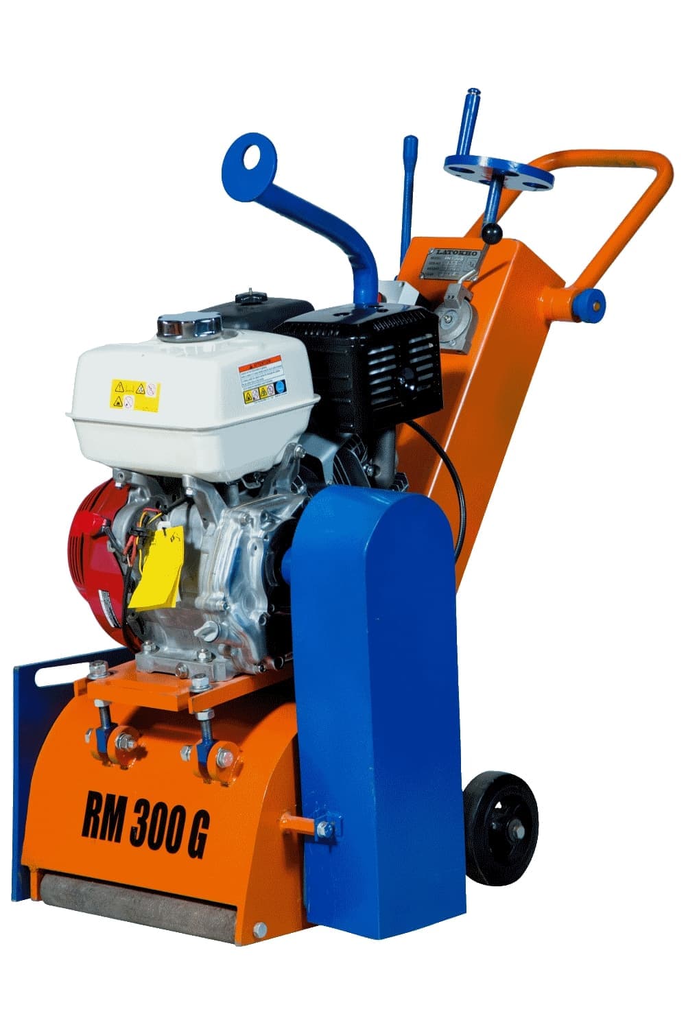 Фрезеровальная машина LATOKHO RM 300 G c электрическим стартером оборудована надежным бензиновым двигателем Honda GX-390 мощностью 11,7 л.с. Емкость топливного бака составляет 6,1 л. Рабочая ширина обработки - 300 мм. Максимальная глубина фрезерования - 14 мм. Используется для фрезерования бетона до марки B50 и асфальта, удаления краски с бетона, очистки покрытий, придания шероховатости поверхности и удаления дорожной и пластиковой разметки с асфальта. На машине предусмотрен выход на пылесос диаметром 40 мм. Машина оборудована съемной боковой панелью, которая меняется в течение 10 минут, при этом машина находится в вертикальном положении. Данные показатели являются самыми быстрыми в мире на этом классе машин. Подъем машины осуществляется за серьгу, расположенную на защитной дуге. Задние транспортные колеса оснащаются роликовым подшипником и пресс-масленкой, которая обеспечивает своевременное смазывание.