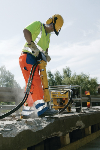 Гидравлический отбойный молоток Atlas Copco LH 390 используется для разрушения кирпичной кладки, строительного раствора, асфальта, неармированного бетона и мерзлого грунта. Основная область применения - реконструкция и модернизация зданий и сооружений. Уровень вибраций 20,1 м/кв.с. Рабочее давление 110 - 125 бар, максимальное обратное давление - 15 бар. Отбойный молоток работает с частотой от 1150 до 1600 уд/мин. Размер зажимного патрона 32х160 мм. Гидравлический поток масла 30/40 л/мин. Энергия удара 125 Дж. Молоток работает практически бесшумно, эксплуатируется в горизонтальном положении (на весу). Подходит для подключения к гидравлической станции Atlas Copco LP 18-40 PE и LP 18 Twin PE. Вес оборудования 33 кг.