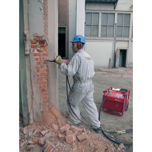 Гидравлический отбойный молоток HYCON HH10RV используется для локального разрушения негабаритных материалов: кирпича и бетона. Рабочее давление 100 - 160 бар, Отбойный молоток работает с частотой 2100 уд/мин. Подходит для проведении подводно-технических работ. Размер зажимного патрона 19x50 мм. Гидравлический поток масла 20 л/мин. Энергия удара 22 Дж. Удобен при работе в узких труднодоступных местах. Вес оборудования 9,9 кг.