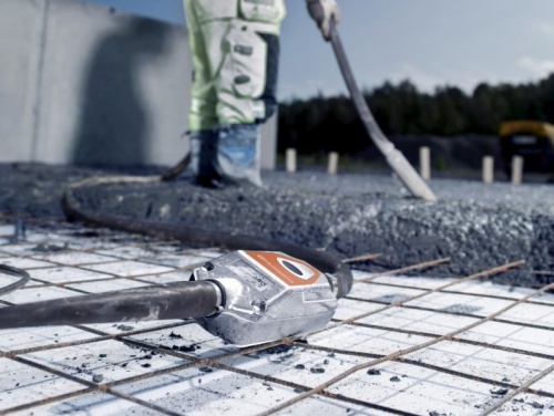 Глубинный вибратор Husqvarna Smart 40 применяется для быстрого уплотнения бетона. Вибратор оборудован электродвигателем 220В мощностью 0,4 кВт. Постоянная вибрация в 12000 об/мин обеспечивает высокую центробежную силу, стабильную скорость и высокую амплитуду воздействия. Диаметр булавы 40 мм, а длина гибкого вала 5 м. Вибробулава изготовлена из специальной закаленной стали. Длина электрического кабеля 15 м. Электроника вибратора располагается в компактном алюминиевом блоке - частотном преобразователе с кнопкой включения. Эффективная функция защиты от перегрузок и функция термозащиты остановит работу преобразователя в момент разогрева блока до 65°C или статора булавы до 120°C. Помехи сети не влияют на работу вибратора - можно работать с сетью при колебаниях напряжения до +/- 10%. Выключатель на стальном держателе защищен резиновой мембраной, а резиновые прокладки внутри блока обеспечивают защиту компонентов от ударов и вибраций. Световой LED индикатор позволяет наблюдать за режимом работы преобразователя. Влагозащищенность алюминиевого блока и булавы IP67. Двойной слой волокна гибкого вала дает дополнительный срок его эксплуатации. Вес оборудования 13,1 кг.