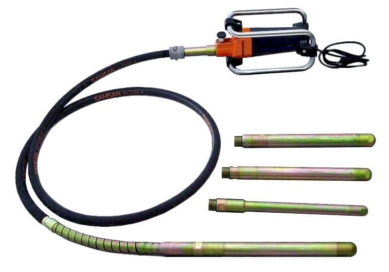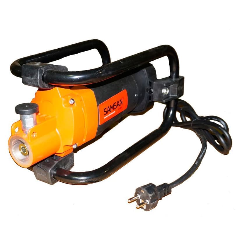Глубинный вибратор Samsan KVM 2300 оборудованный электрическим двигателем 220В мощностью 2,3 кВт, используется для уплотнения бетонных смесей в процессе их укладки. Диаметр наконечника варьируется от 32 до 60 мм. Благодаря маятниковой системе, колебания булавы достигают 12000 об/мин при вращении вала 4000 об/мин. Усиленный корпус вибратора выполнен из высокопрочного пластика. Низкие обороты двигателя и вала существенно снижают нагрузку на оператора и оборудование, а высокая частота работы булавы позволяет добиться качественного уплотнения бетона.