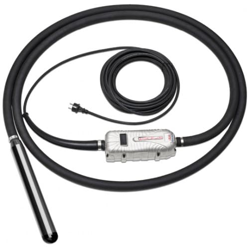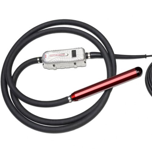 Глубинный вибратор SPYDER PRO 38 со встроенным преобразователем применяется для уплотнения бетонных смесей. Мощность двигателя 0,75 кВт. Диаметр булавы 38 мм, а длина 370 мм. Длина вала 5 метров. Корпус вибратора выполнен из алюминия. Кнопка управления изолирована, что позволяет избежать проникновения жидкости внутрь. Если оборудование фиксирует, что сила тока превышает средние показатели, оно автоматически отключается. Вибратор оснащен фильтром против электромагнитных интерференций сети. Вес оборудования 14,6 кг.