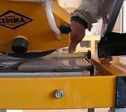 Камнерезный станок Cedima CTS-57 G мощностью 2,2 кВт, максимальной глубиной реза 125 мм, длиной реза 600 мм, ∅ диска 400 мм используется для резки кирпича, клинкера, натурального камня и других подобных им материалов. В станке есть функция подачи воды для охлаждения диска, она подается прямо из ведра на режущий диск. Грязная вода остается в ванне, где загрязнения отделяются. Через переливную заглушку в ванне вода возвращается в ведро и используется повторно. Режущий блок установлен на шариковых опорах, для резки под углом он может наклоняться. Самофиксирующийся винт стопорит рукав при 0, 15, 30 и 45 градусов. Две сменные скользящие опоры из латуни гарантируют простое передвижение на направляющем поручне. Станок прост в погрузке и транспортировке благодаря складным ножкам.