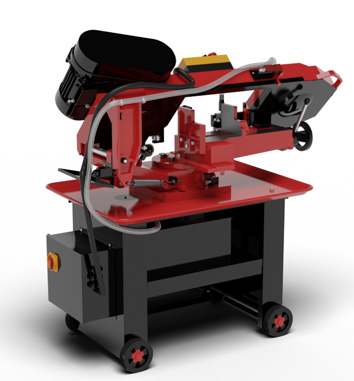 Ручной ленточнопильный станок MetMachine LSZ1120 предназначен для распила металлических заготовок под углом от -45° до +45°. Станок оборудован асинхронным электродвигателем мощностью 1,1 кВт, работает от сети 380 В. Максимальный диаметр круглых заготовок 205 мм, максимальные габариты профильных или квадратных сечений до 235×205 мм (при резе под углом 90°). Ленточное полотно может работать на скоростях 24, 41, 61 и 82 м/мин. Тиски с ручным зажимом и доводчиком позволяют легко фиксировать заготовку. Система СОЖ имеет отдельную емкость и регулируемый расход жидкости. Удобная винтовая рукоятка обеспечивает точное и надёжное натяжение ленты без использования дополнительного инструмента. Система активной очистки удаляет стружку с пилы. Вес оборудования 230 кг.