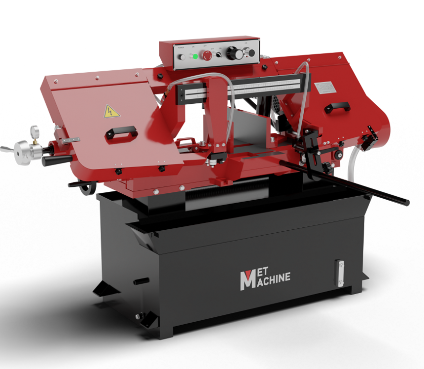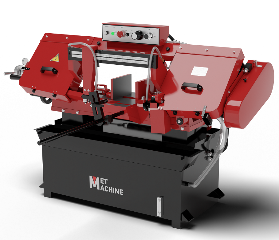 Ручной ленточнопильный станок MetMachine LSZ1523 мощностью 1,5 кВт, работает от трехфазной электросети (380 В). Станок используется для распила металлических заготовок под углом 90° и 45°. Максимальный диаметр круглых заготовок 228 мм, максимальные габариты профильных или квадратных сечений до 355×228 мм (при резе под углом 90°). Ленточное полотно может работать на скоростях 25, 40, 51 и 71 м/мин. Система подачи СОЖ встроена в тумбу станка. Оборудование снабжено двумя регулируемыми подводами охлаждающей жидкости, повышая качество реза и предотвращая коррозию деталей. Компенсирующая пружина облегчает подъем рамы после завершения операции. Вес оборудования 340 кг.
