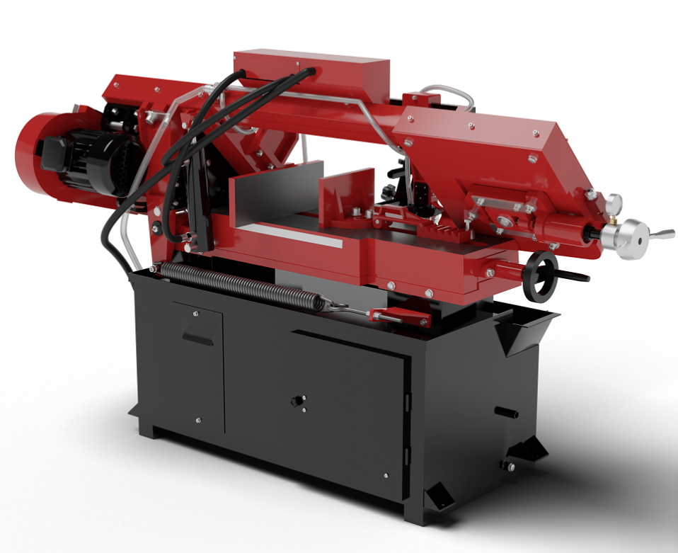 - Четыре режима подачи ленты (25, 40, 51 и 71 м/мин) позволяют адаптировать станок под различные виды металлов и сечений. Переключение осуществляется посредством переноса ремня на шкивах.
