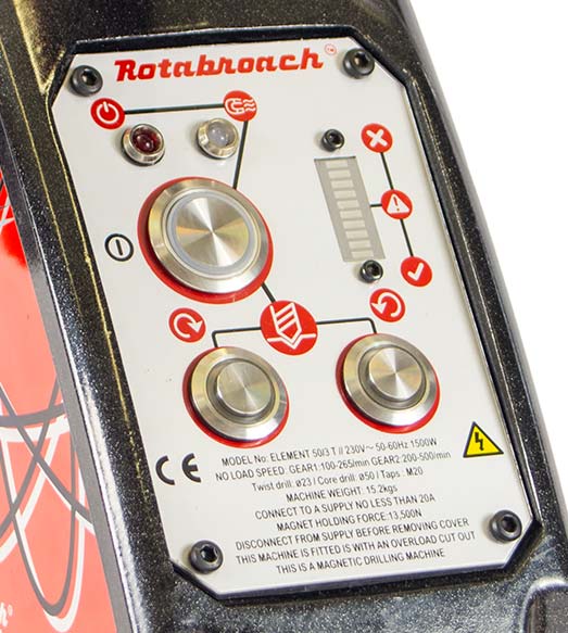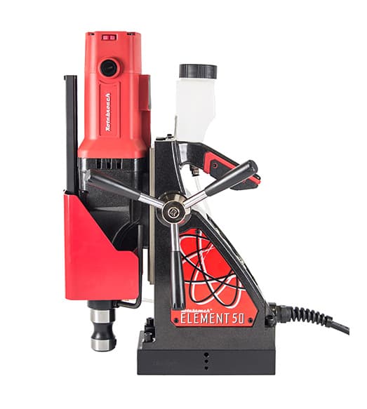 Магнитный сверлильный станок Rotabroach Element 50 применяется на производстве, в строительстве, на железной дороге, в нефтехимической промышленности и в других сферах, где необходимо сверление черных металлов глубиной до 50 мм. Максимальный диаметр сверления корончатым сверлом 50 мм, а спиральным 23 мм. Станок оборудован технологией Cutsmart, которая отображает нагрузку на сверло. Автоматическая подача смазочно-охлаждающей жидкости (СОЖ) осуществляется через шпиндель вращения. Станок оснащен удобной ручкой для переноски. Вес оборудования 15,8 кг.