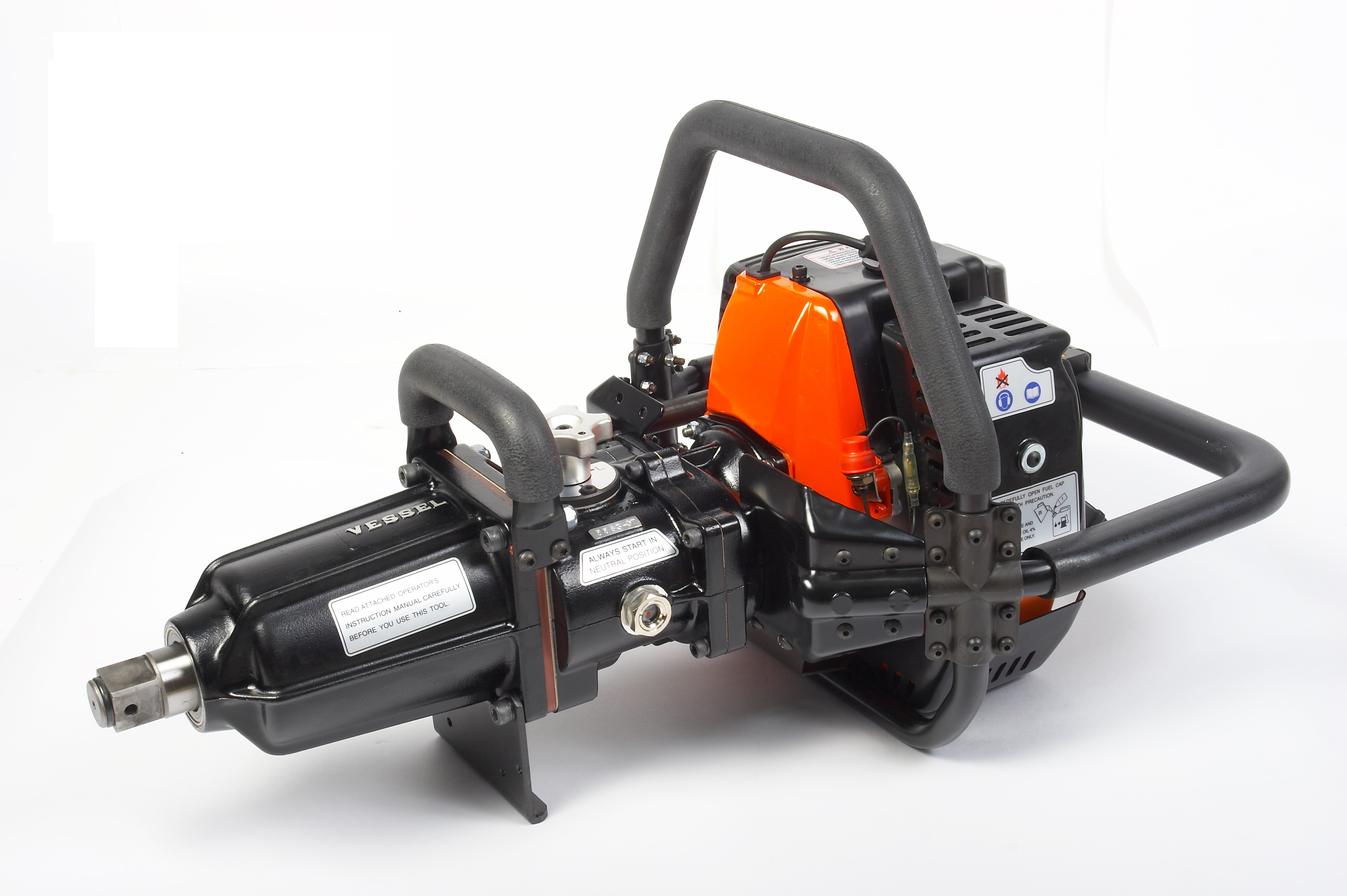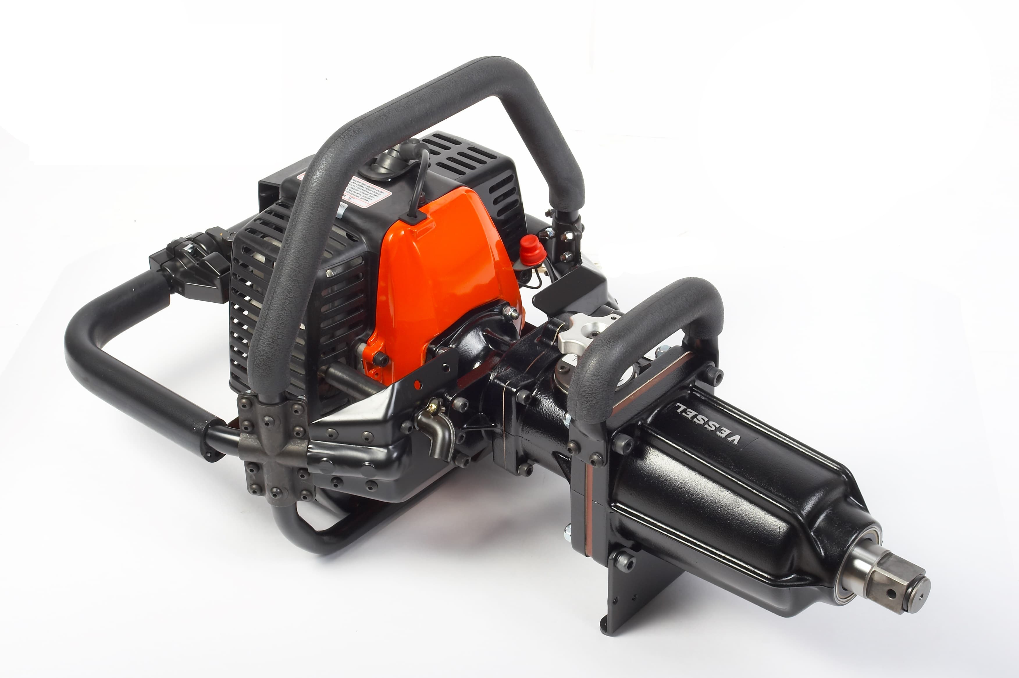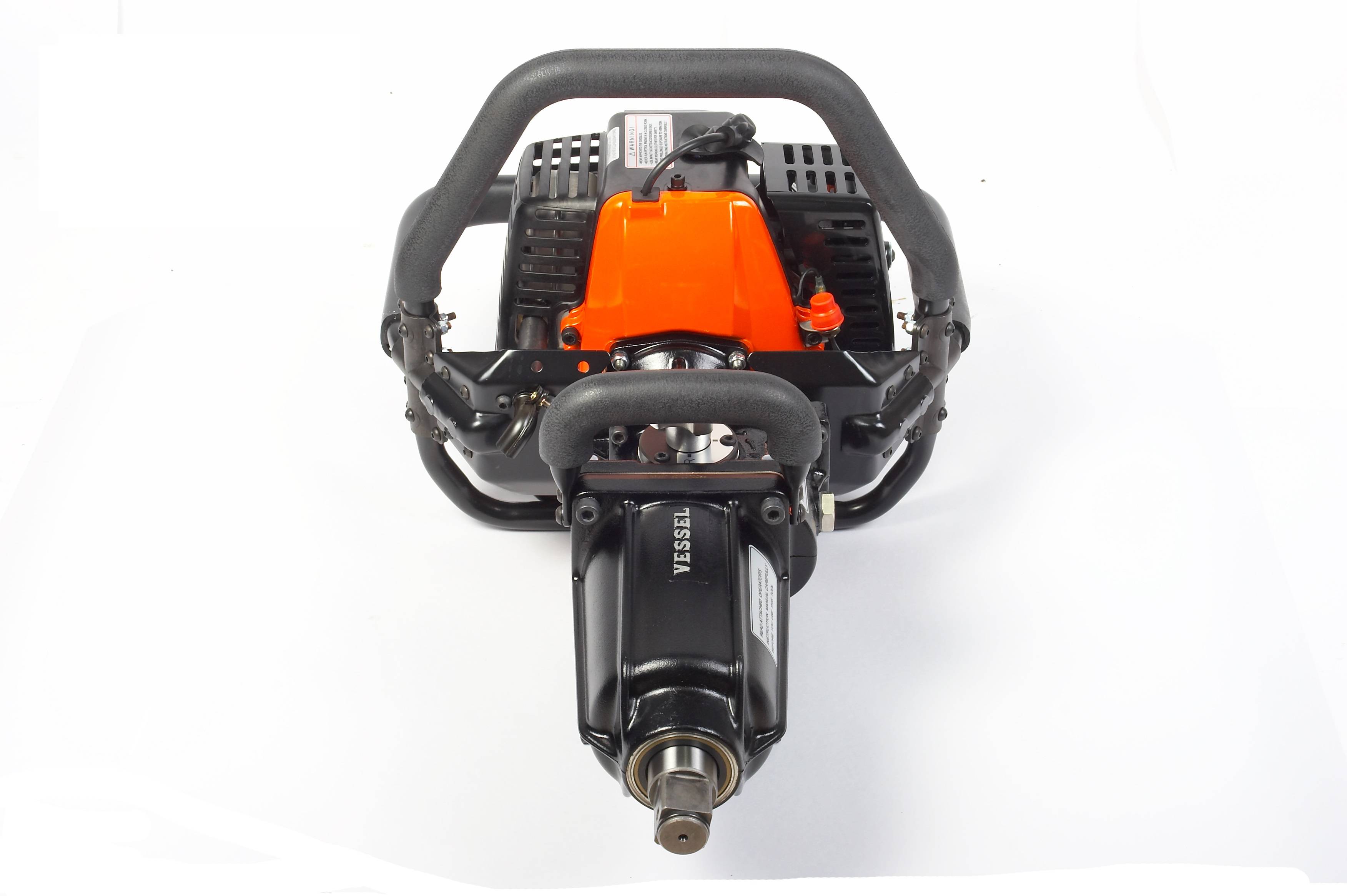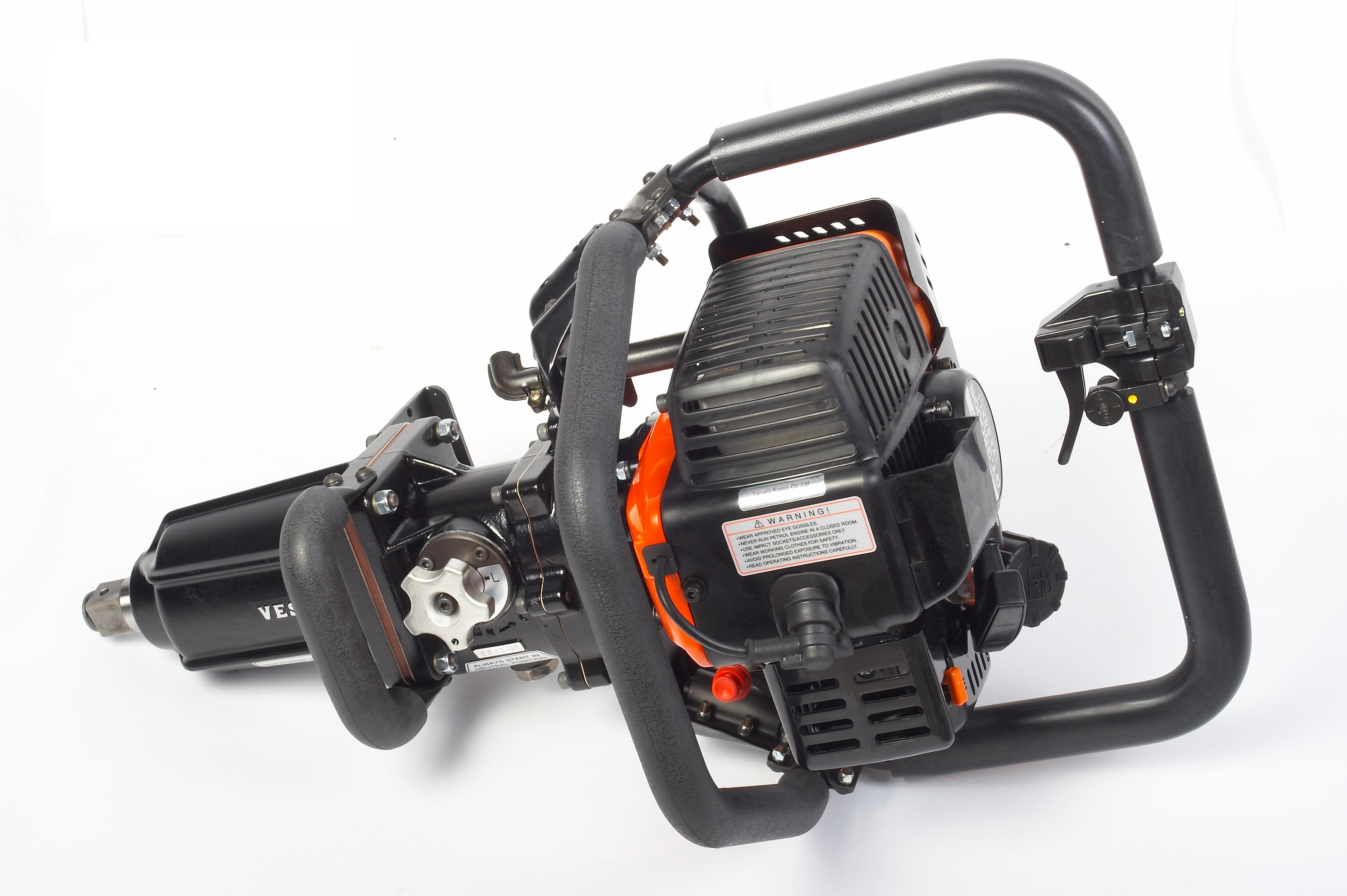 - Бензогайковерт оснащен автономным двухтактным двигателем внутреннего сгорания повышенной мощности