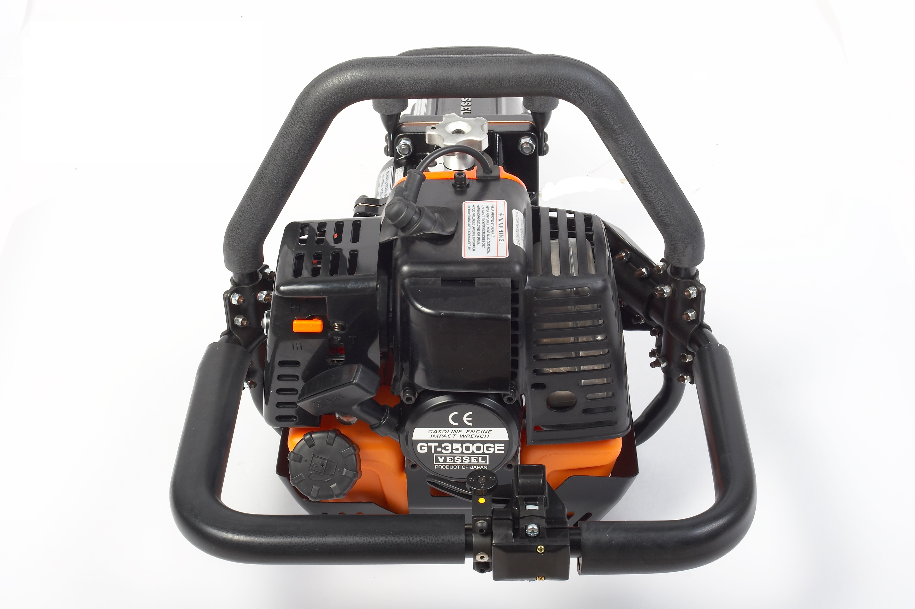 Бензогайковерт Vessel GT-3500GE оснащен автономным двухтактным двигателем внутреннего сгорания Tanaka мощностью 2,3 л.с. Емкость топливного бака 1 л. Рабочий диапазон гайковерта охватывает размер болтов до М 52 (размер гайки под ключ на 80), что подходит для закручивания и откручивания закладных, клеммных, стыковых болтов и путевых шурупов. Также бензогайковерт можно использовать для сверления отверстий в деревянных шпалах под путевые шурупы и костыли. Бензогайковерт предназначен для работы в тяжелых условиях и используется в качестве силового привода. Специальные ударные головки под шуруп позволяют использовать бензогайковерт в качестве шуруповерта. Оборудование имеет легкий вес 19,5 кг. Компания Vessel предоставляет гарантию 24 месяца на двигатель.