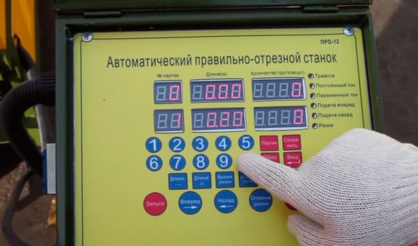 - Оснащение панелью управления, благодаря которой можно задавать размер и количество прутков для автоматической правки и резки