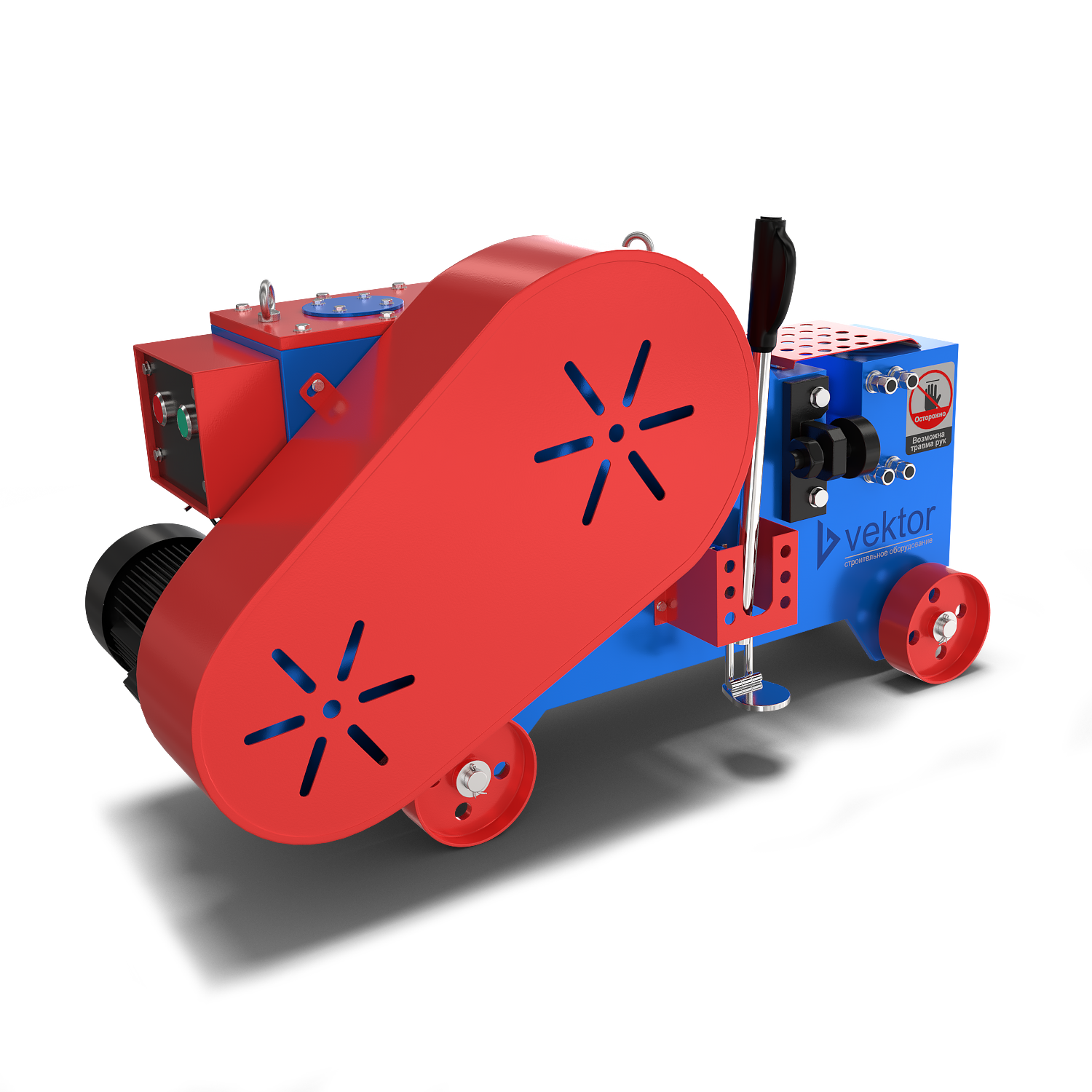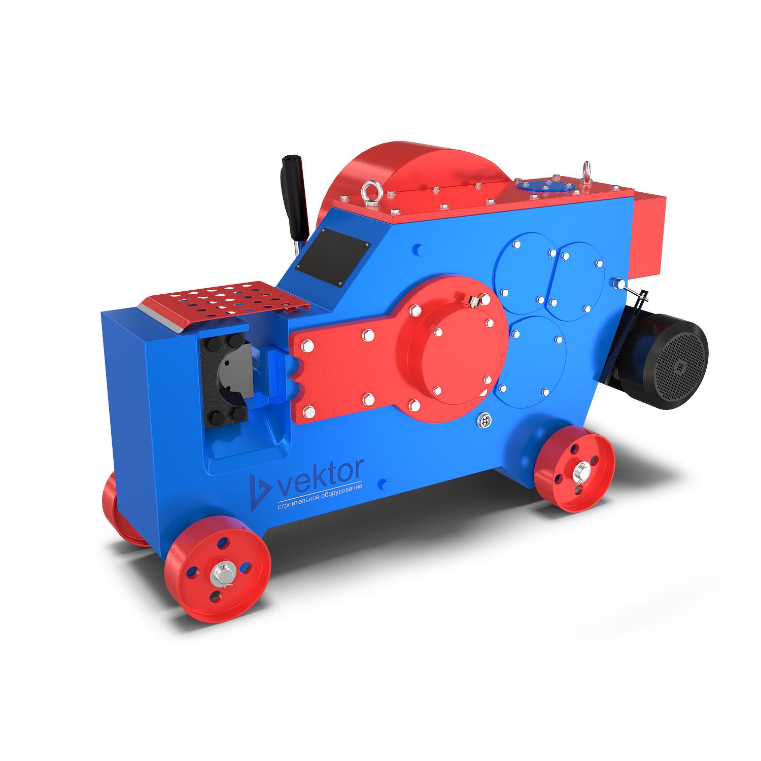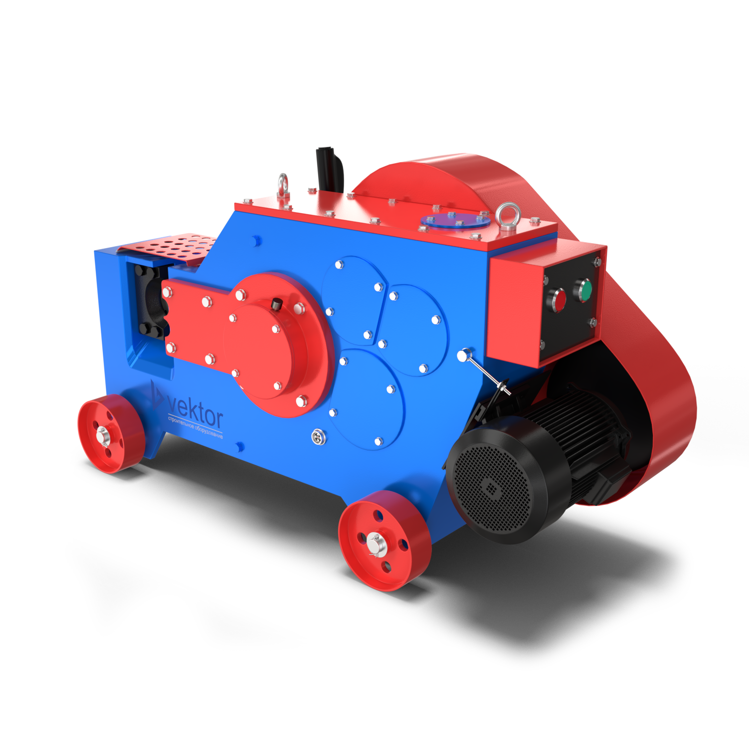Станок для резки арматуры Vektor GQ32 оборудован электрическим двигателем собственного производства мощностью 3 кВт с классом изоляции F. Станок применяется для высокоточной обработки стальных прутьев арматуры с винтовой нарезкой или без нее. Максимальный диаметр арматурной стали составляет 32 мм. За счёт использования шестерни с косыми зубами, уровень шума в работе не выше 85 дБ. Станок с литым корпусом выполнен из высокопрочного чугуна. Наличие смотрового окна помогает отслеживать уровень масла в редукторе. Вес оборудования 312 кг.