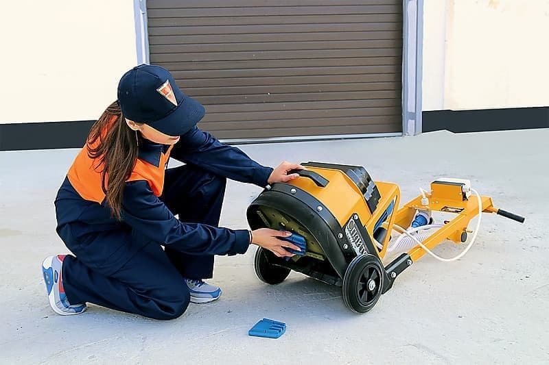 - Возможность подключения пылесоса. Защита оператора от пыли - приоритетная задача производителя данного оборудования, которую предоставляет присоединенный промышленный пылесос. Кроме этого, сухая шлифовка дает возможность визуального контроля выполняемой работы