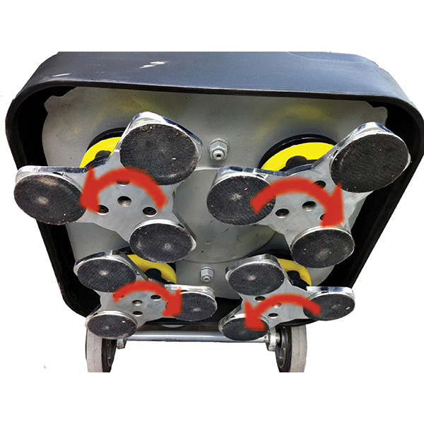 Машина мозаично-шлифовальная GROST PMC700-3 - самая мощная модель в линейке перекрестных мозаично-шлифовальных машин. Модель оснащена электрическим двигателем 380В мощностью 11 кВт. Ширина шлифовки составляет 700 мм.Применяется для чернового выравнивания пола с крупными перепадами и финишного шлифования и устранения мелких неровностей. 30-литровый бак для воды позволяет долгое время работать с применением водяного охлаждения, не прерываясь на дозаправку. Машина оснащена редуктором с четырьмя вращающимися роторами, на которые при помощи магнитов и штырей крепятся шлифовальные элементы. Удобная рукоять управления позволяет регулировать скорости вращения. Машина может использоваться для обработки любого типа бетона. Не подходит для обработки чистого камня (мрамора, гранита). Вес оборудования 300 кг. С помощью утяжелителя 40 кг (входит в комплект) при необходимости можно увеличить давление на поверхность. На машине имеется разъем для подключения пылесоса.