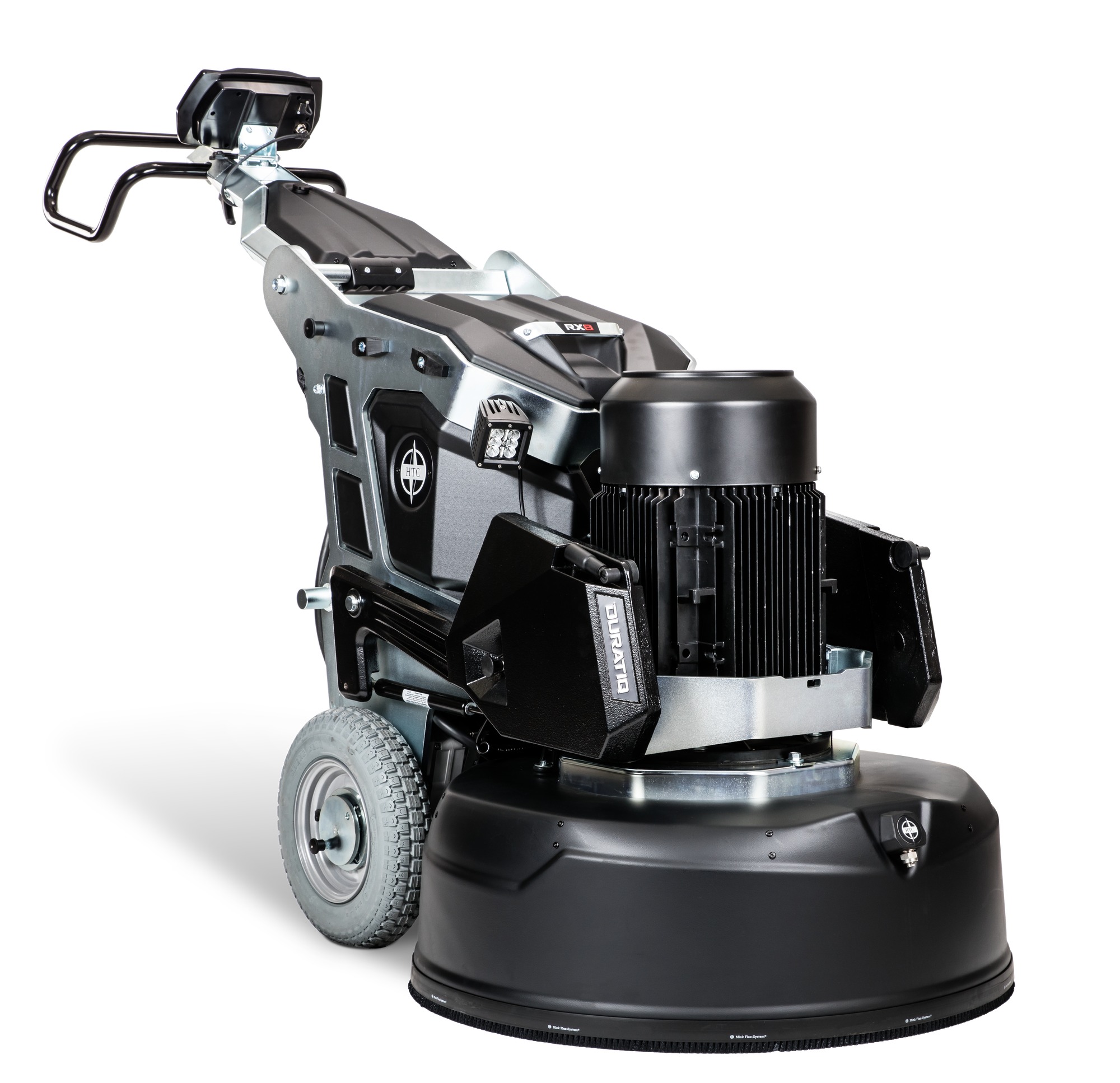 Мозаично-шлифовальная машина HTC Duratiq T8 применяется для полирования и грубой шлифовки бетонной поверхности. Машина оснащена электрическим двигателем 380В мощностью 7,5 кВт. Ширина шлифовки составляет 800 мм. Машина оборудована планетарной головкой с четырьмя вращающимися дисками диаметром 270 мм. Количество используемых алмазных франкфуртов 9 штук. Пыленепроницаемая и герметичная головка рассчитана на длительный срок эксплуатации. Интервал сервисного обслуживания машины увеличен до 1000 часов. Машина имеет яркое светодиодное освещение: две фары направлены вперед и одна назад. Новая система Mist Cooler System с обновленной форсункой и системой подачи воды, обеспечивает улучшенное охлаждение инструмента. Бак для подачи воды приобретается отдельно. Для удобства эксплуатации машина оборудована интуитивно понятной цифровой панелью управления HMI. Машина базируется на новой конструкции шасси с полным учетом центра тяжести, маневренности и ощущений. Вес оборудования 499 кг.