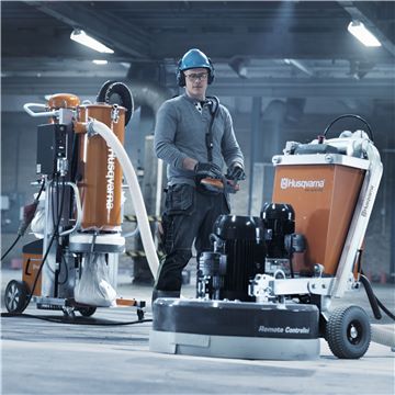 Мозаично-шлифовальная машина Husqvarna PG 820 RC - самоходная машина с беспроводным пультом дистанционного управленияМашина оснащена электрическим двигателем 380В мощностью 12,5 кВт. 5-элементный механизм герметизации защищает подшипники и внутренние механизмы от агрессивного воздействия бетонной пыли и шлама во время полировки бетона. Колеса машины, изготовленные из твердой литой резины, способствуют более ровному и стабильному ходу. Ширина шлифовки составляет 820 мм. Скорость вращения шлифовального диска 250-1100 об/мин. Количество дисков 3 шт, диаметр 270 мм. Пульт управления снабжен четкой маркировкой и обеспечивает регулировку и управление различными функциями машины. Dual Drive Technology™ – уникальная запатентованная система привода с двумя электродвигателями имеет отдельные двигатели для шлифовальных дисков и для планетарного механизма, что обеспечивает полный контроль скорости и направления вращения головок. Шлифовальные диски и планетарная головка могут вращаться как в одном направлении, так и противоположных направлениях и независимо друг от друга. Вес оборудования 440 кг.