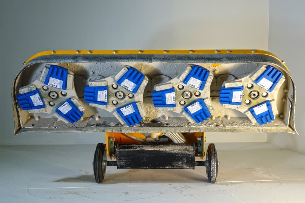 - Отсутствие вибрации шлифовального инструмента. Хорошая балансировка траверсы и франкфуртов, для сохранения которой требуется их регулярная очистка от налипаемого бетона