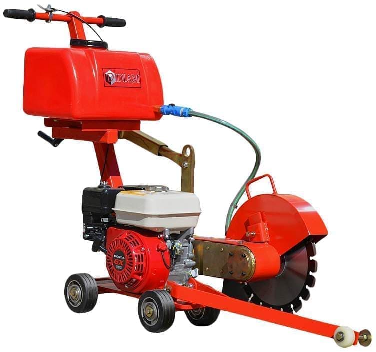 Нарезчик швов DIAM RK-350 оборудован бензиновым двигателем Honda GX160 мощностью 5,5 л.с. Применяется для нарезания швов в асфальте, асфальтобетоне, бетоне и других напольных покрытиях. Максимальный диаметр диска 350 мм, а глубина реза 125 мм. Резчик оснащен системой подачи воды в зону реза. Емкость топливного бака составляет 3,6 л. Резчик оборудован удобными органами управления, указателем глубины реза, направления диск.