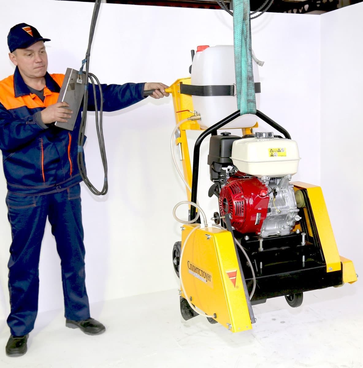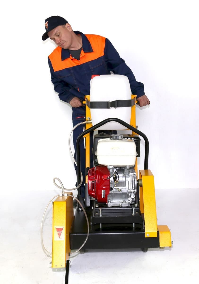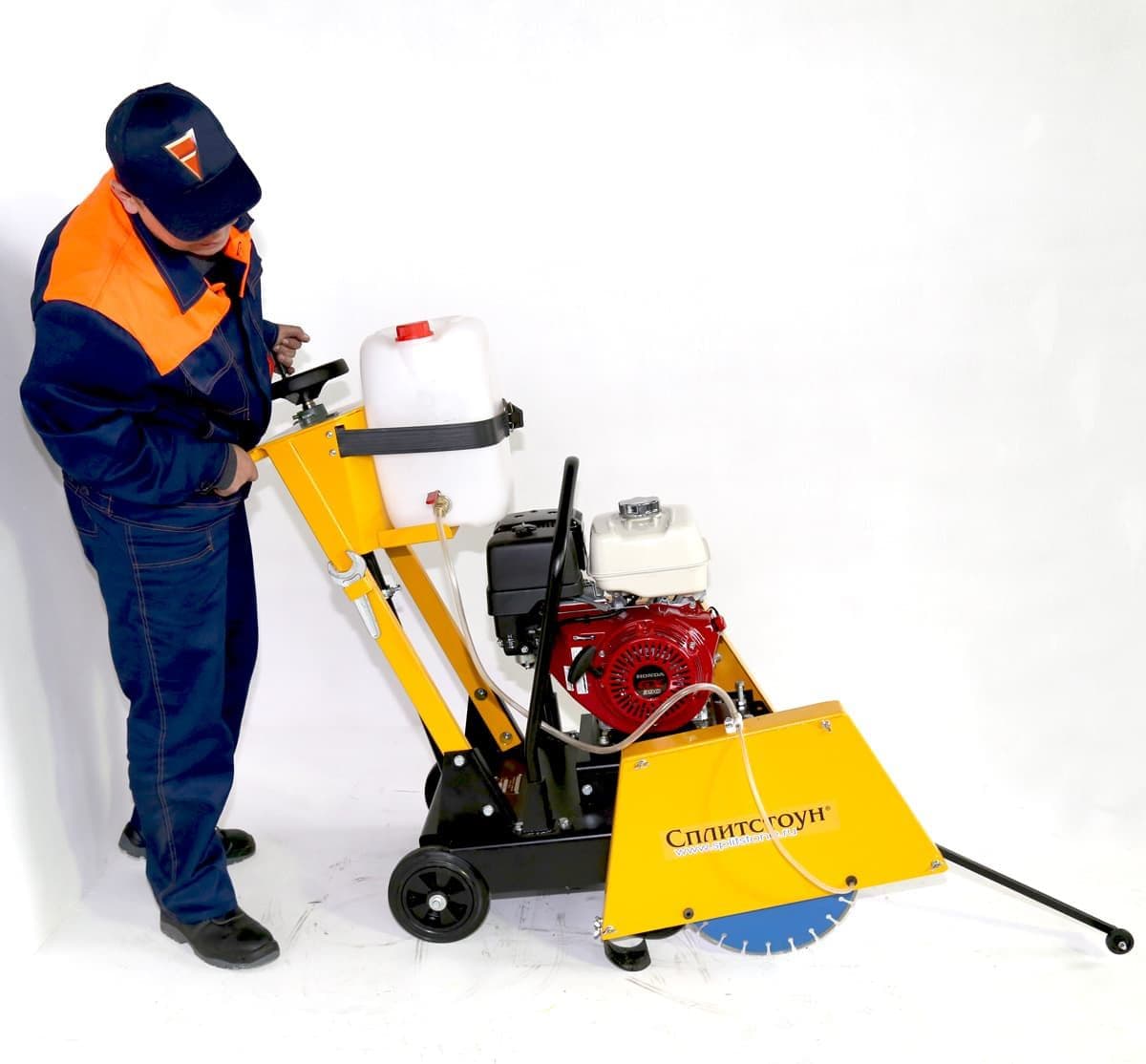 Нарезчик швов Сплитстоун CS-1813 оснащен бензиновым двигателем Honda GX390 мощностью 11 л.с и укомплектован 20-литровым баком для воды с подводкой жидкости в зону реза для охлаждения диска и удаления лишнего шлама. Резчик используется для мелких дорожных работ, резки технологических пазов или температурных швов в покрытиях из асфальта, бетона и железобетона глубиной до 190 мм. Небольшие габариты резчика 1200х720х1200 позволяют работать в узких и тесных пространствах.
