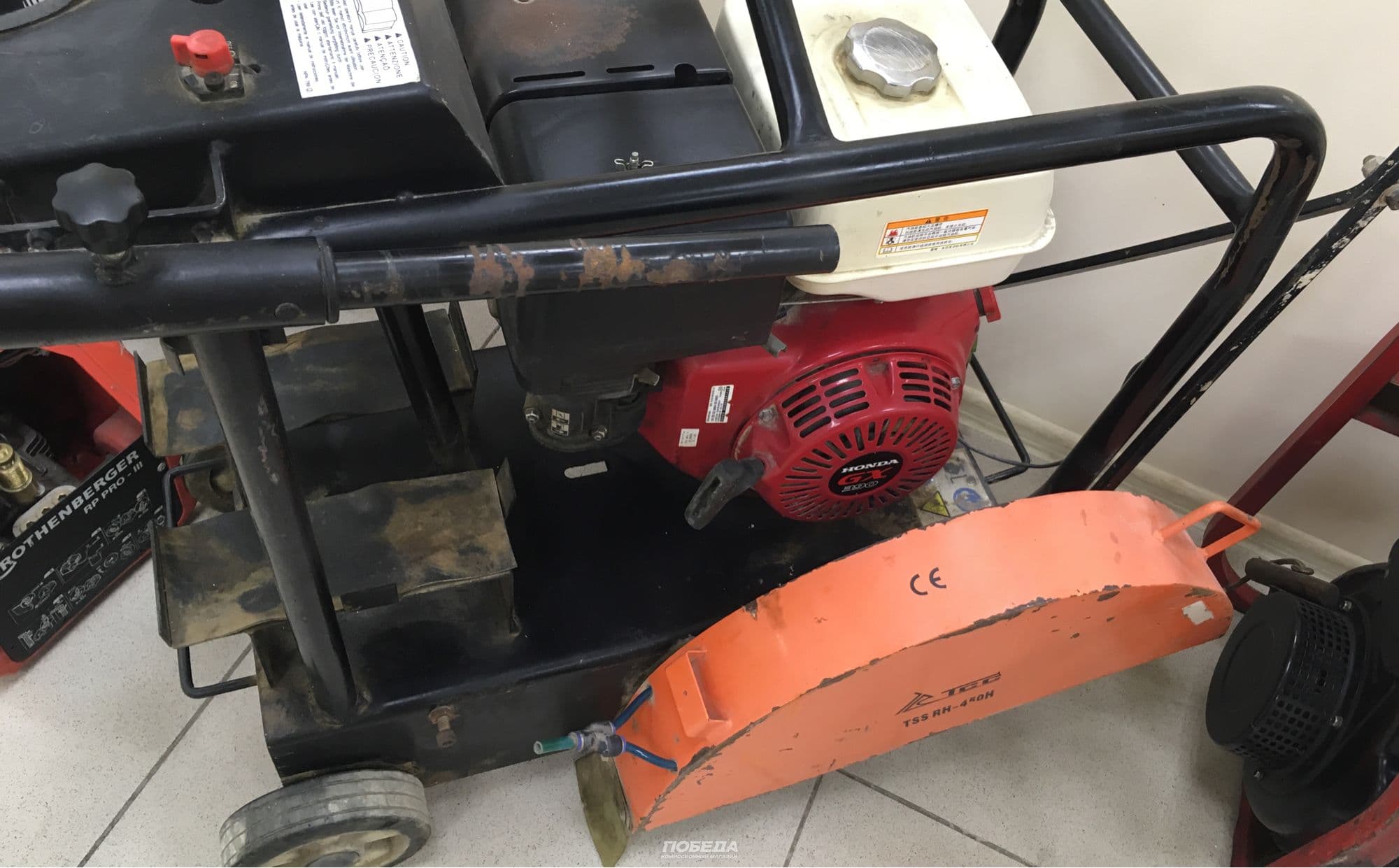 Нарезчик швов TSS RH-450H оборудован бензиновым двигателем Honda GX390 мощностью 13 л.с. Максимальная глубина реза составляет 160 мм. Диаметр используемого диска 450 мм. Режущий диск надежно защищен откидной стальной крышкой. Применяется при строительстве, укладке дорожного полотна, ремонте дорог, тротуаров и автомагистралей, прорезании швов в бетонном покрытии, в садовом и ландшафтном строительстве. Съемная рукоятка с регулировкой обеспечивает комфортное рабочее положение. Высокопрочная стальная рама способна воспринимать высокие нагрузки и гасить вибрацию. Вес оборудования 120 кг.