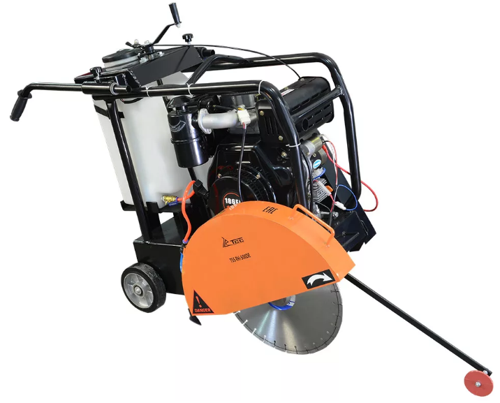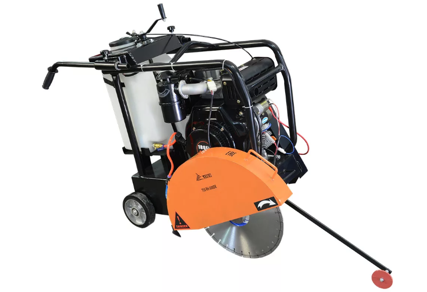 Нарезчик швов TSS RH-500GE оборудован бензиновым двигателем S420 мощностью 11,7 л.с. Диаметр используемых дисков от 400 до 500 мм. Максимальная глубина реза 200 мм. Применяется для резки швов в асфальтных, бетонных, железобетонных, гидроизоляционных и каменных покрытиях. Режущий диск надежно защищен откидной стальной крышкой. Указатель линии реза вынесен далеко вперед и позволяет оператору заранее наметить и четко соблюдать направление реза. Станок имеет ручной и электрический запуск и счетчик моточасов. Аккумулятор входит в комплект поставки. Съемная рукоятка с демпфирующей накладкой и регулировкой по высоте обеспечивает удобство работы оператора. Вес оборудования 120 кг.