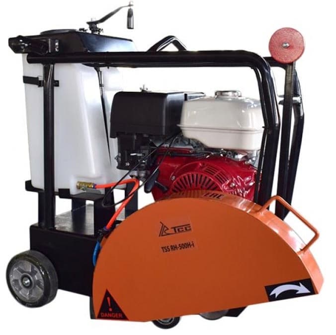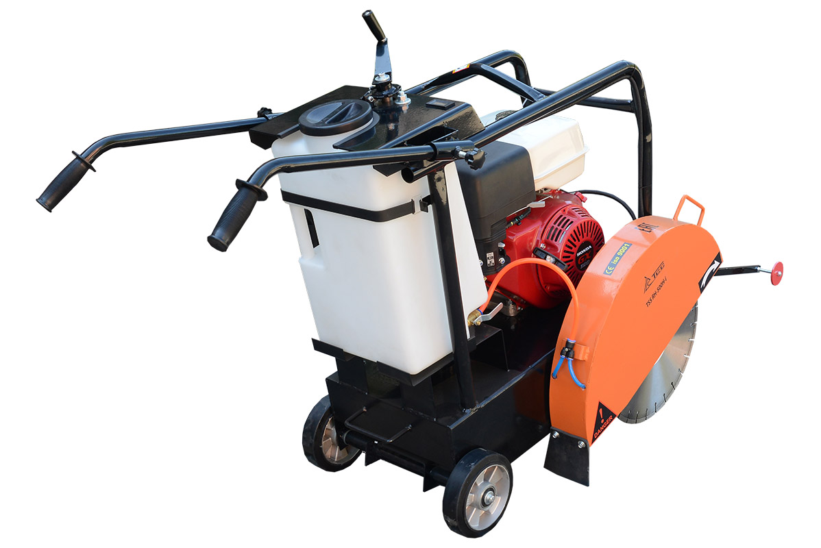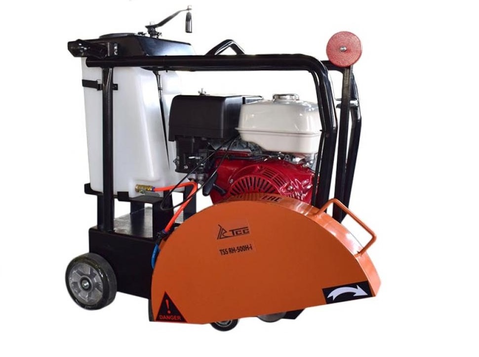 Нарезчик швов TSS RH-500H- I оснащен бензиновым двигателем Honda GX390 мощностью 13 л.с. Используется для резки швов в асфальтных, бетонных, железобетонных, гидроизоляционных, каменных покрытиях и других материалах. Максимальная глубина реза составляет 200 мм. Диаметр используемых дисков от 400 до 500 мм. Съемный 30-литровый бак для воды обеспечивает регулируемую подачу воды в зону резки для охлаждения диска. Защитные кожухи на движущихся элементах обеспечивают безопасность работы. Вес оборудования 120 кг.