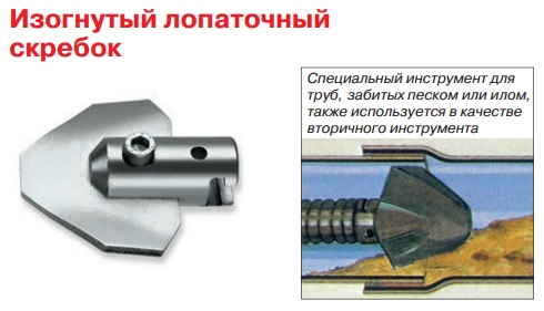 Изогнутный лопаточный скребок Rothenberger 22 мм с закаленными лезвиями из пружинной стали используется для устранения засоров и прочистки труб. Скребок способег разрушать затвердевшие засоры и отложения, справляется с засорами из цемента, а также устраняет засоры из твердых материалов путем измельчения. Специальный изогнутый инструмент для труб, забитых песком или илом. Подходит ко всем спиралям Rothenberger. Муфта 22 мм 7/8“. Длина насадки 65 мм, а диаметр 65 мм. Вес 150 гр.