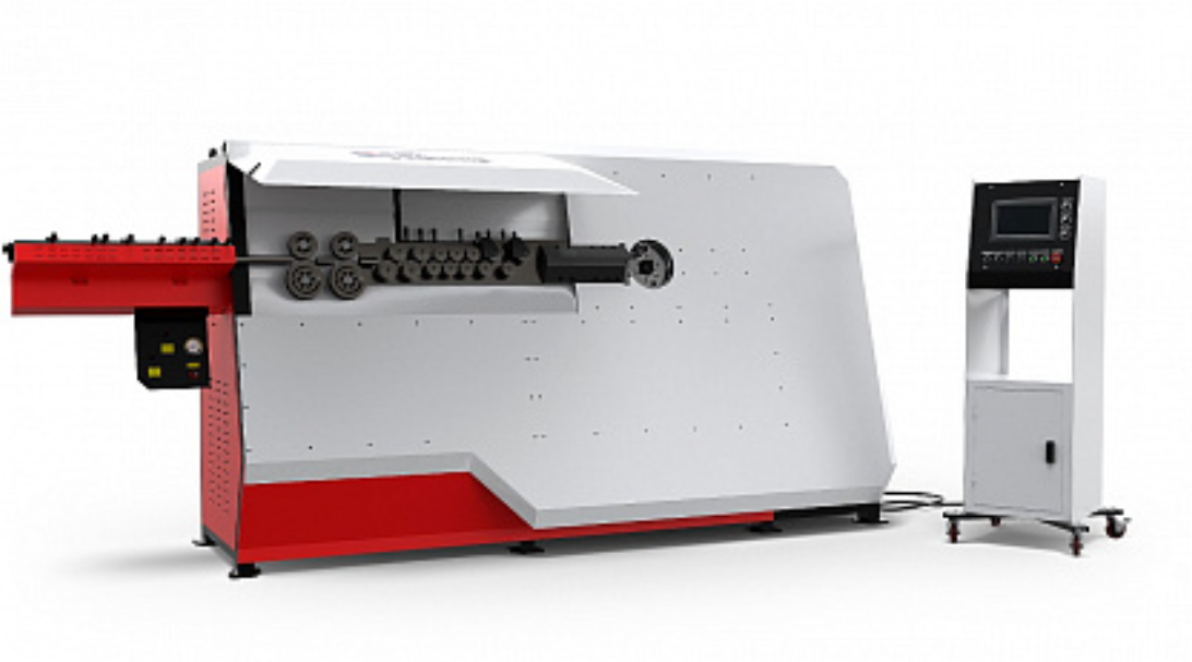 Правильно-гибочный автомат с ЧПУ AGW4-14B мощностью 25 кВт, используется для изготовления скобяных изделий, используемых в производстве железобетонных изделий. Станок отличается высокой производительностью и надежностью. Максимальная скорость подачи арматуры 85 мм/с. Диаметр круглой арматуры при подаче в 1 линию - 5-14 (гладкая), 5-12 (рифленая), при подаче в 2 линию - 5-12 (гладкая), 5-10 (рифленая). Простота конструкции позволяет производить обслуживание и ремонт самостоятельно. Вес оборудования 2590 кг.