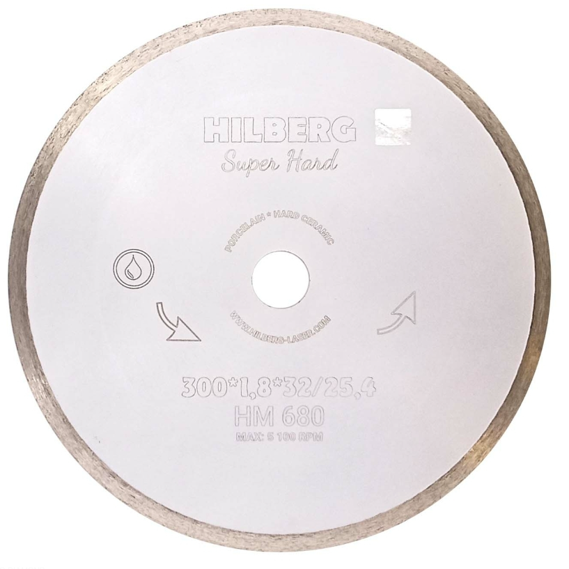 Алмазный диск Hilberg Super Hard Сплошной Ø300 мм используется для резки керамогранита и твердой керамики с применением водяного охлаждения. Диск изготовлен методом горячего прессования. Толщина алмазного слоя 1,8 мм, а высота 10 мм. Посадочное отверстие - 25,4 мм. Ультратонкая кромка обеспечивает чистый рез без сколов. Диск подходит для работы на камнерезных и плиткорезных станках.