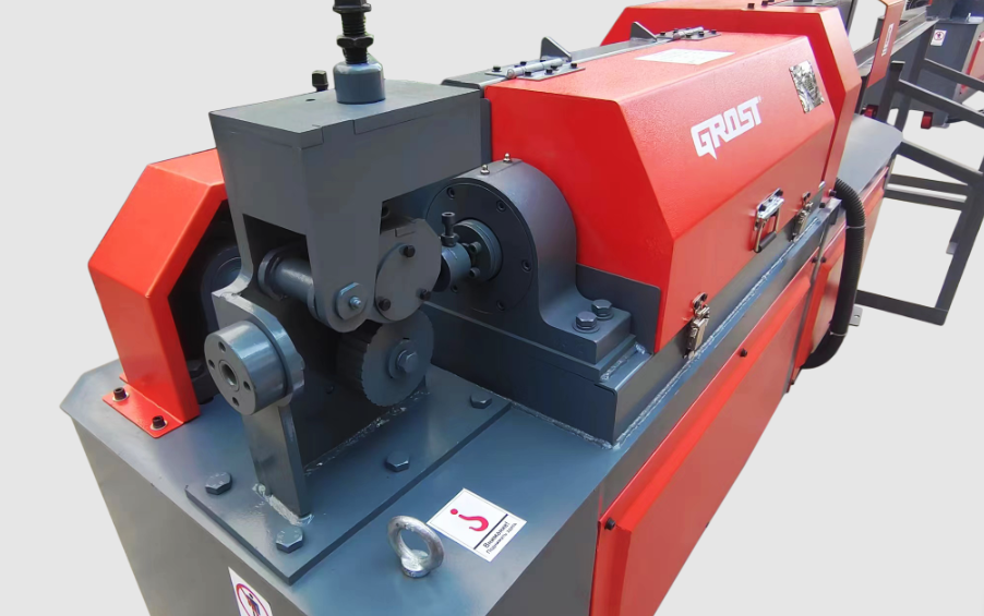 Станок GROST SCR 6-14 предназначен для правки и резки арматурных стержней. Он может работать как в ручном, так и в автоматическом режиме. Во время эксплуатации оборудование должно быть надежно закреплено. Мощность двигателя выпрямления и протяжки составляет 15 кВт. Максимальный диаметр арматурных стержней A1 (A240) -14 мм, A3 (A400) - 12 мм, A500C - 10 мм. Скорость протяжки достигает 55 м/мин, а минимальная длина отрезаемых прутков — 10 мм. Масса станка составляет 950 кг.
