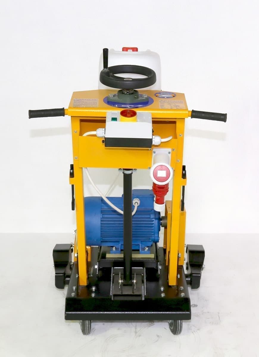 Раздельщик трещин Сплитстоун CS-910E оснащен электрическим двигателем 380В мощностью 11 кВт. Раздельщик можно эксплуатировать в закрытых помещениях, где есть розетка, без вреда для здоровья. Используемый диаметр диска 230 мм. Скорость работы:1 м/мин по асфальту и 0,5 м/мин по бетону. На оборудовании есть функция обратного вращения алмазного круга. Глубина реза составляет 70 мм. На раздельщик можно установить 2 диска. Ширина реза одним диском составляет 10 мм, а двумя - 23 мм. Применяется для разделки прямолинейных и криволинейных трещин и резки объемных швов в дорожных покрытиях, покрытиях из бетона, асфальта, железобетона и камня. Раздельщик комплектуется 20-литровым баком для воды. К оборудованию можно подключить строительный пылесос для отвода образующегося шлама. За счет функции обратного вращения режущего алмазного диска получается чистый и ровный шов.