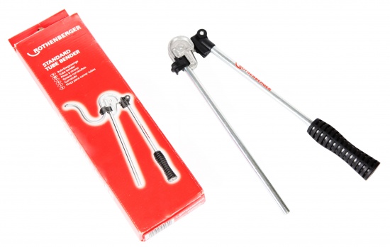 Стандартный трубогиб Rothenberger 14 применяется для точной гибки труб под углом до 180°. Материал труб: мягкая медь, алюминий и тонкостенная сталь. Диаметр труб до 14 мм. Зажимное устройство позволяет осуществлять гибку коротких труб. Длина 450 мм, радиус гибки 47 мм. Вес оборудования 1,58 кг.