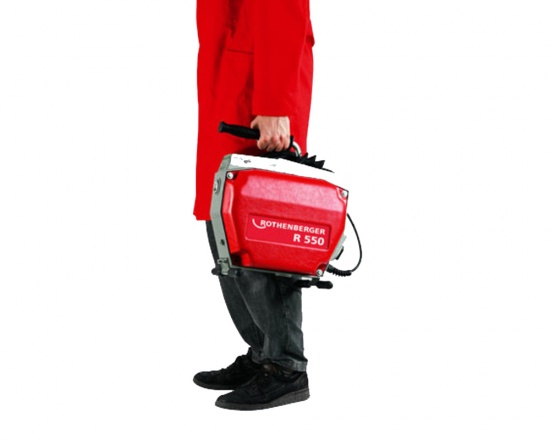 Прочистная машина Rothenberger R550 оснащена электродвигателем 220 В мощностью 0,25 кВт. Машина применяется для прочистки труб диаметром от 20 до 100 мм. Также используется для устранения засоров в сливах раковин, туалетах, дренажных стоках, сточных трубах и водосточных трубах. Приводной рычаг машины в нерабочем положении жестко фиксируется и служит ручкой для переноски. При использовании S-спирали 16 мм, максимальная рабочая длина составляет 40 м. При использовании спиралей Ø 8/10 мм, максимальная рабочая длина составляет 10 м. Вес оборудования 16 кг.