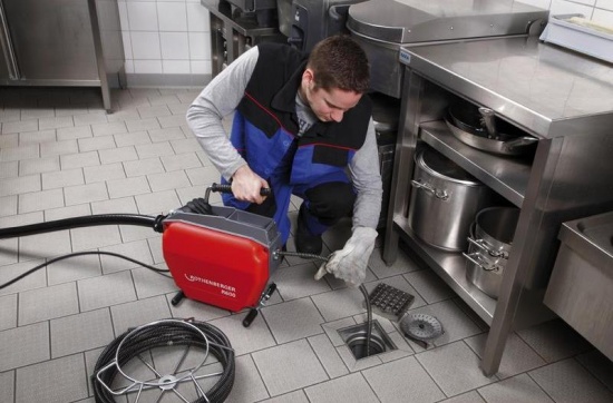 Прочистная машина Rothenberger R600 оснащена электродвигателем 220 В мощностью 0,4 кВт. Машина применяется для прочистки труб диаметром от 20 до 150 мм. Также используется для устранения засоров в сливах раковин, туалетах, дренажных стоках, сточных трубах и водосточных трубах. Возможно фугование внутреннего диаметра трубы с помощью цепной насадки и резка корневищ с помощью корнереза. Приводной рычаг машины в нерабочем положении жестко фиксируется и служит ручкой для переноски. При использовании S-спирали 16 мм, максимальная рабочая длина составляет 50 м, а с S-спиралями Ø 22 мм - 60 м. При использовании спиралей Ø 8/10 мм, максимальная рабочая длина составляет 10 м. Вес оборудования 20,9 кг.
